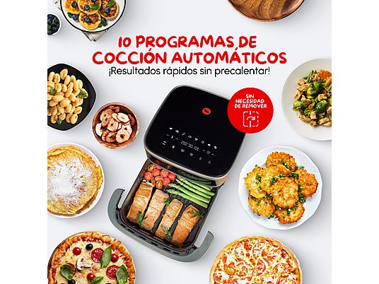 Prepara fácilmente tus platos favoritos, desde pescado y pollo hasta verduras y galletas. Incluso cuenta con un programa para pizzas que las deja listas en menos de 7 minutos sin necesidad de precalentar.