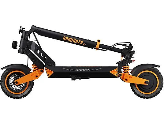 Kamikaze K1 – Rendimiento compacto con máxima comodidad diaria El Kamikaze K1 ha sido diseñado para ofrecer una conducción urbana equilibrada, combinando potencia, seguridad y confort. Perfecto para desplazamientos diarios o escapadas de fin de semana. Motor de 1000 W y batería de 48 V / 15 Ah con hasta 60 km de autonomía. Velocidad máxima de 20 km/h, ideal para entornos urbanos controlados. Ruedas tubeless de 10” con suspensión y frenos de disco dobles para una conducción estable y segura. Chasis plegable de aleación de aluminio, ligero y fácil de transportar o guardar. Pantalla LCD clara, intermitentes integrados y resistencia al agua IPX5. No apto para la circulación en vías públicas. Solo se permite su uso en terrenos privados.