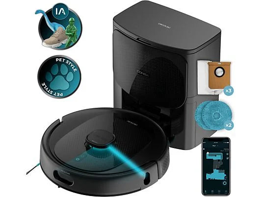 Robot aspirador - Cecotec Conga 9990 AI Spin Revolution Ultra Power Home, 4 en 1, Navegación láser, 10 kPa, 240 min, Base de autovaciado, Wi-Fi, Black